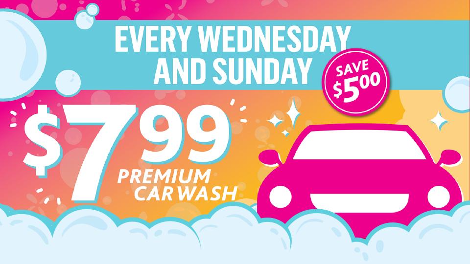 Every Wednesday and Sunday, treat your ride to a Co-op Premium Car Wash for only $7.99 – a savings of $5.00!