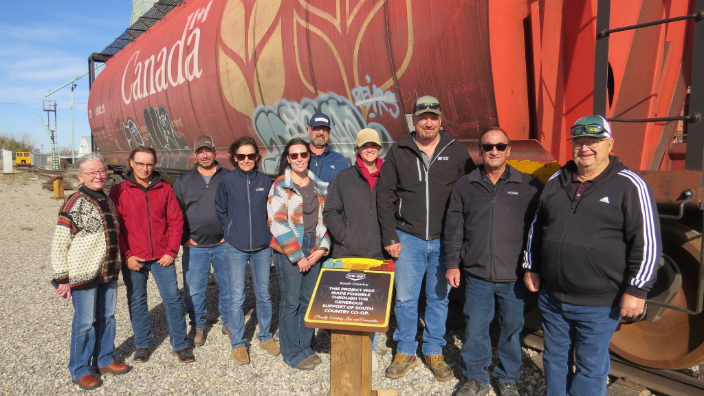 As part of this new program, South Country Co-op contributed $16,000 to support the Nanton Grain Elevator Preservation Society in bringing a historic federal issue grain car home to their site.